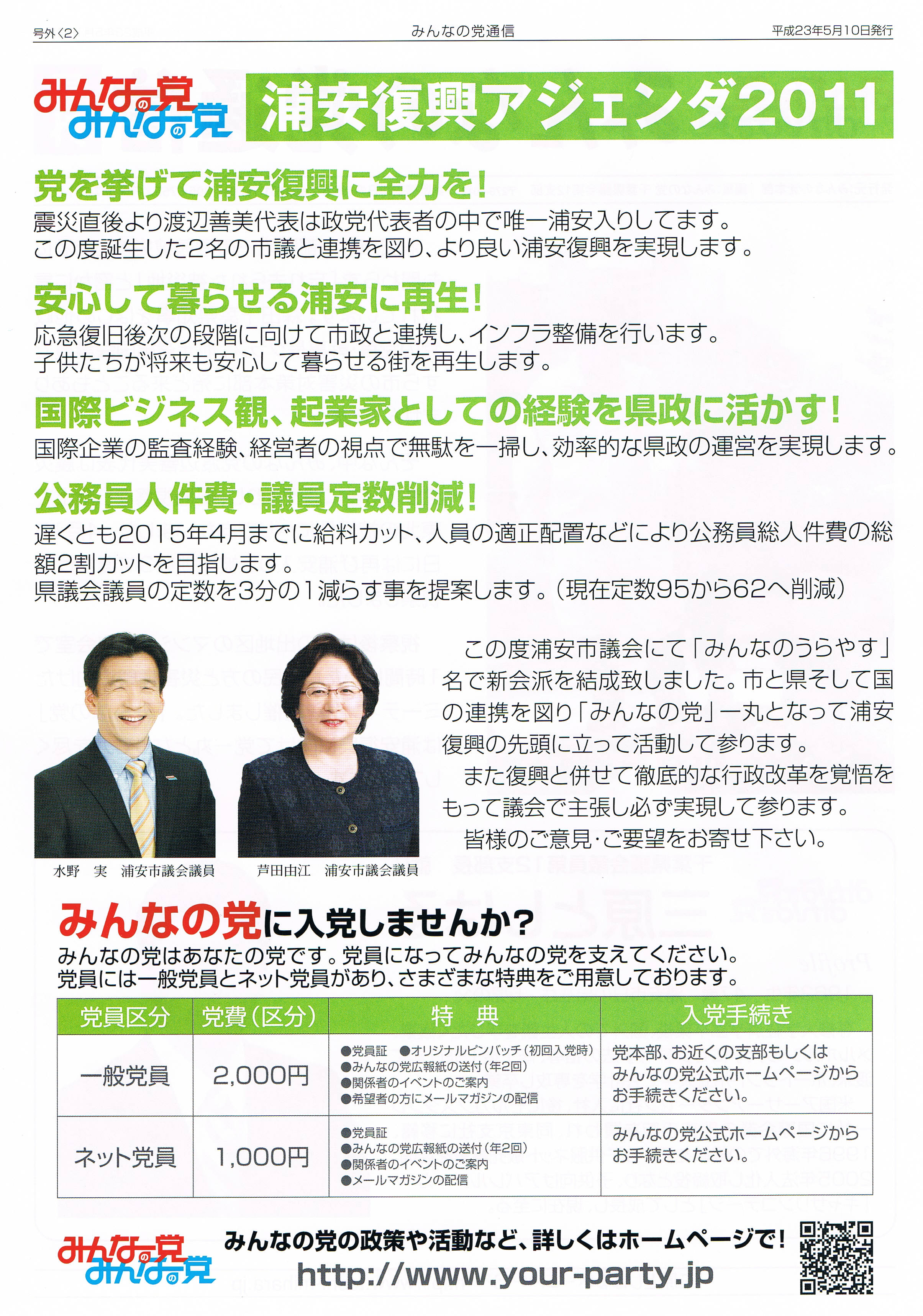| 三原としはるの約束(みんなの党通信 裏) | 2011年05月12日発行 |